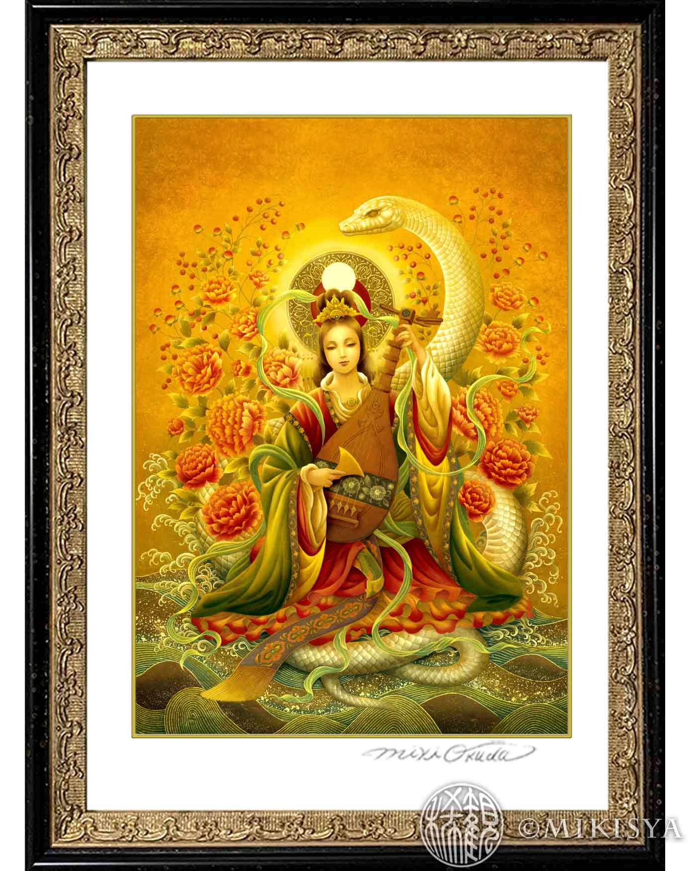 【白蛇弁財天】SSサイズ|財運・縁結びの女神|七福神|ジクレー版画・神仏画