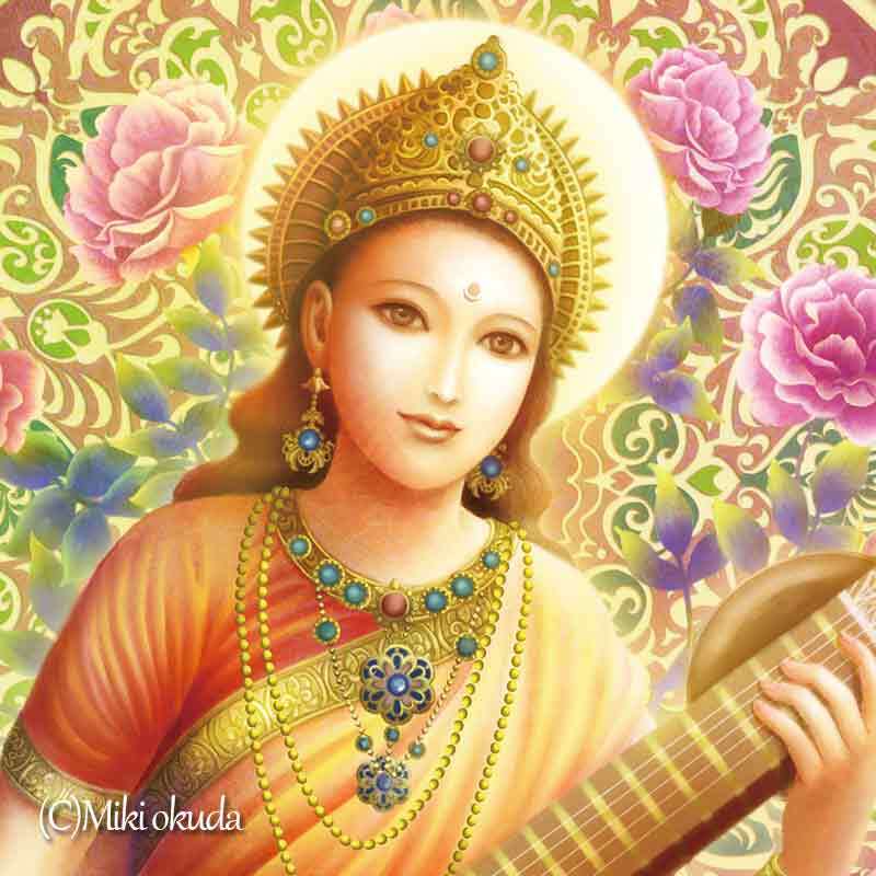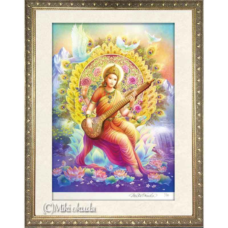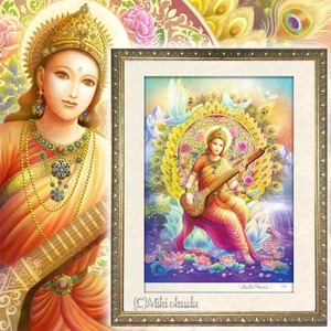 【ヒンドゥー教の女神・サラスヴァティ】Sサイズ(288㎜×379㎜)│スピリチュアルジクレー版画│エターナルオラクルカード