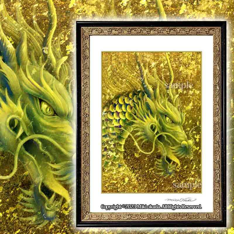 【金龍・(通常版)】│かっこいい龍イラスト│龍の絵スピリチュアル│龍絵画│幸運を呼ぶ絵画 │ジクレー版画