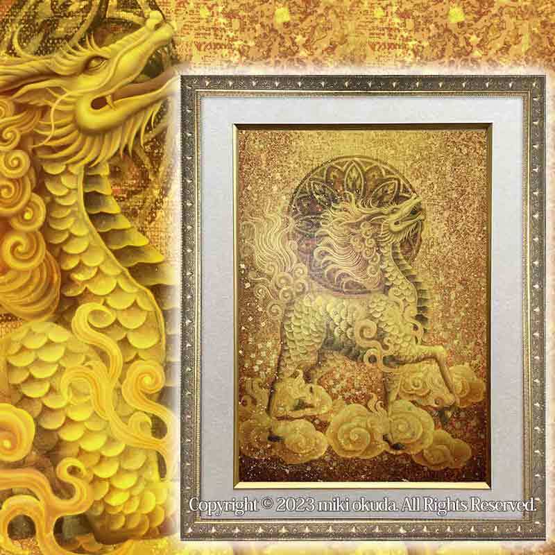 麒麟・(光稀)神獣イラスト 開運絵 スピリチュアル神獣・ジクレー版画│輝く顔料で一枚ずつエネルギーを加筆
