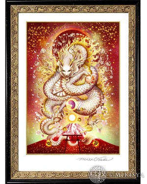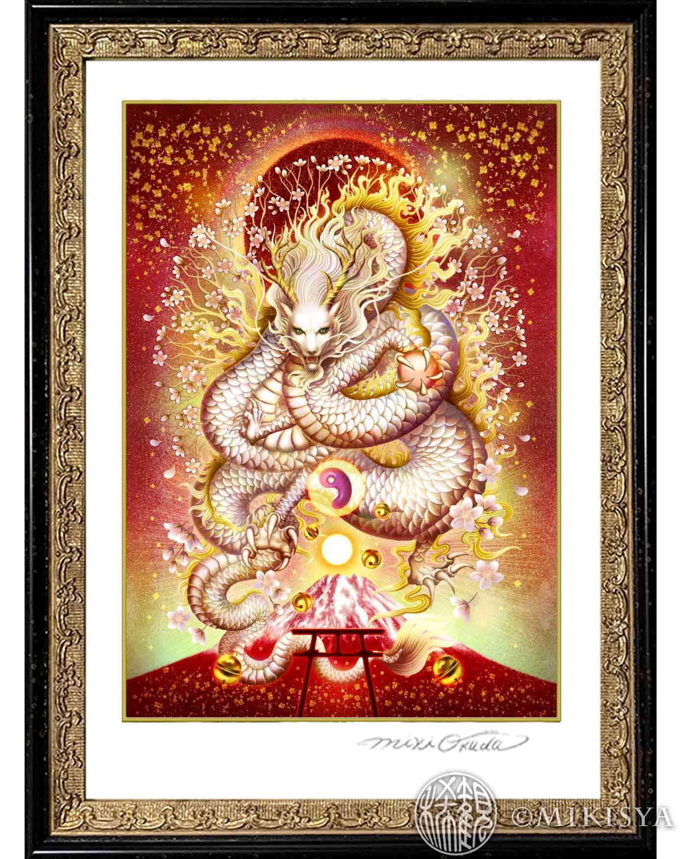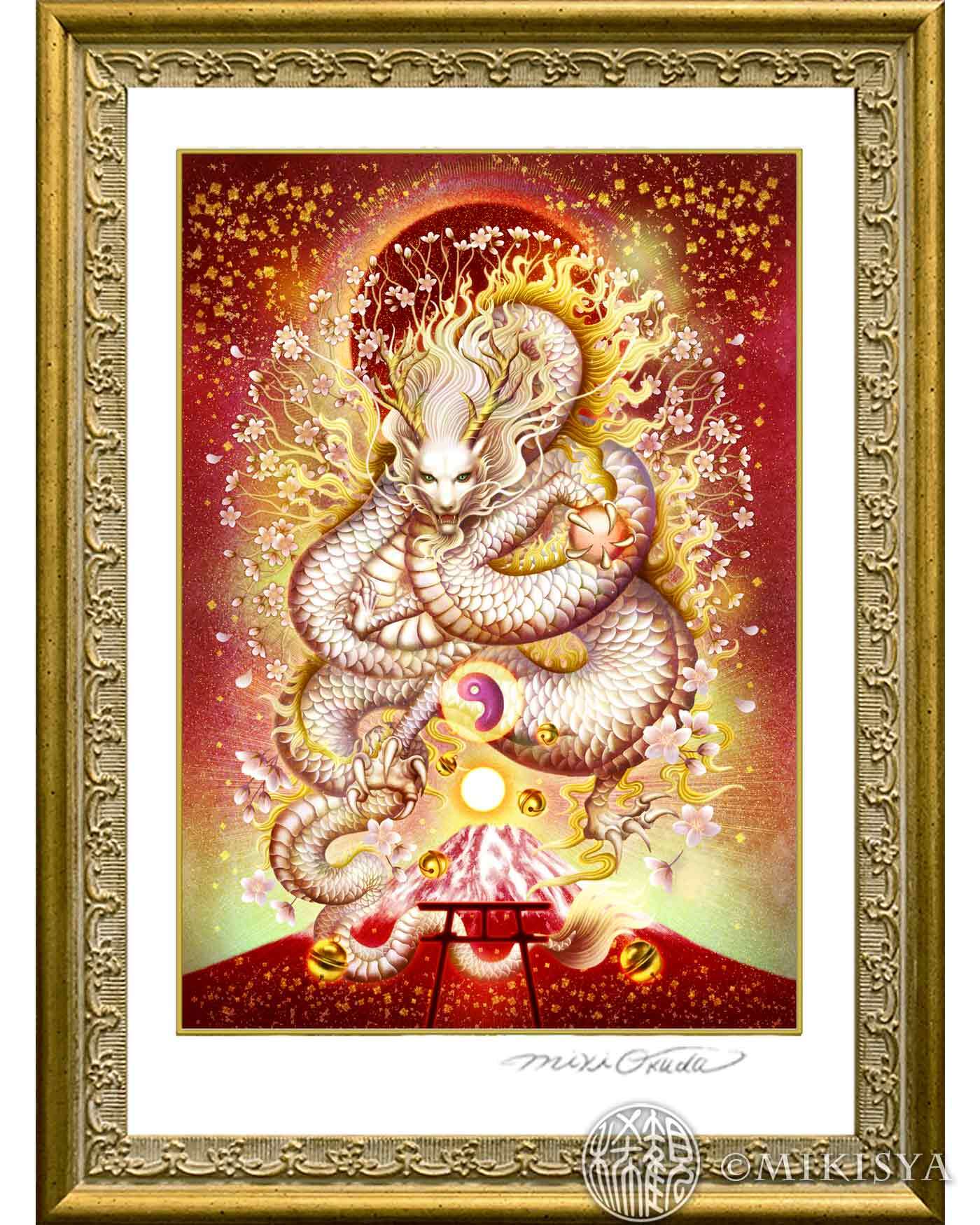 白龍/富士龍|光と炎の龍神 − 木花咲耶姫の守護龍のジクレー版画[SSサイズ]